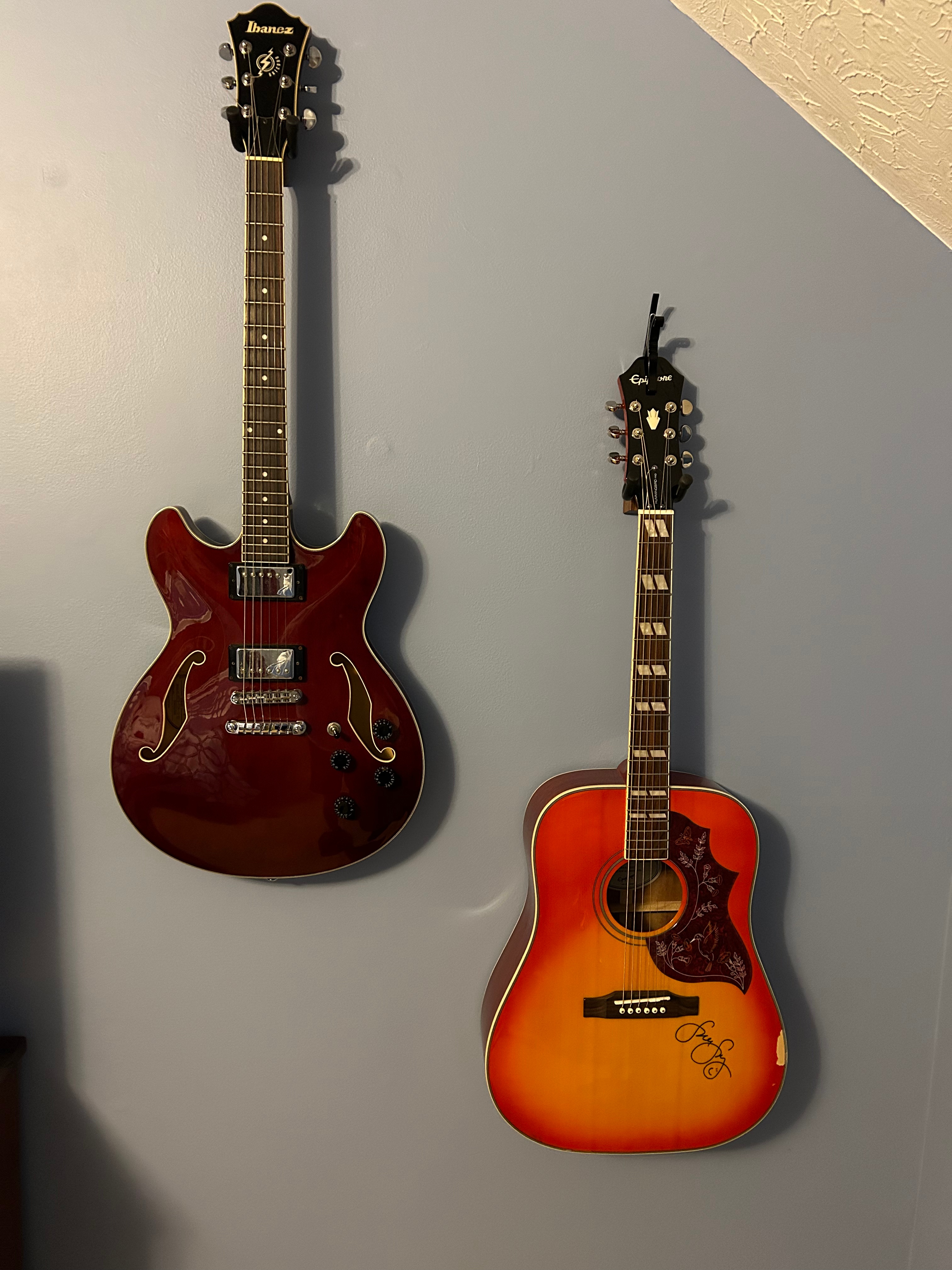 I’ve always loved music and guitar. After years of hearing my wife play piano and sing, and my sons play guitar and sing, I finally took the time to watch YouTube and teach myself guitar. I love playing guitar. My playing is still getting better, and I quickly became quite adept at collecting guitars!